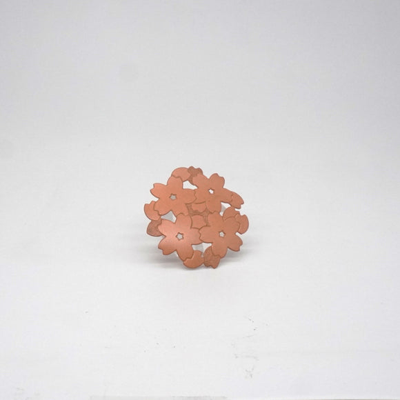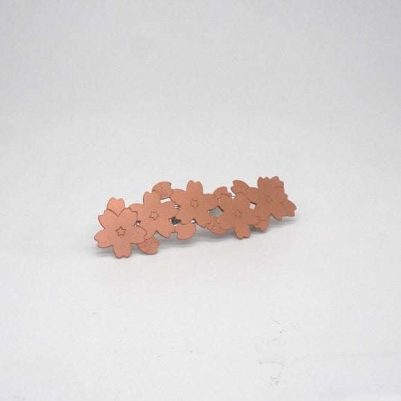 うっすらと感じられる銅の桃色が桜とリンクし、金属製でありながらも柔らかくあたたかい印象を与える。